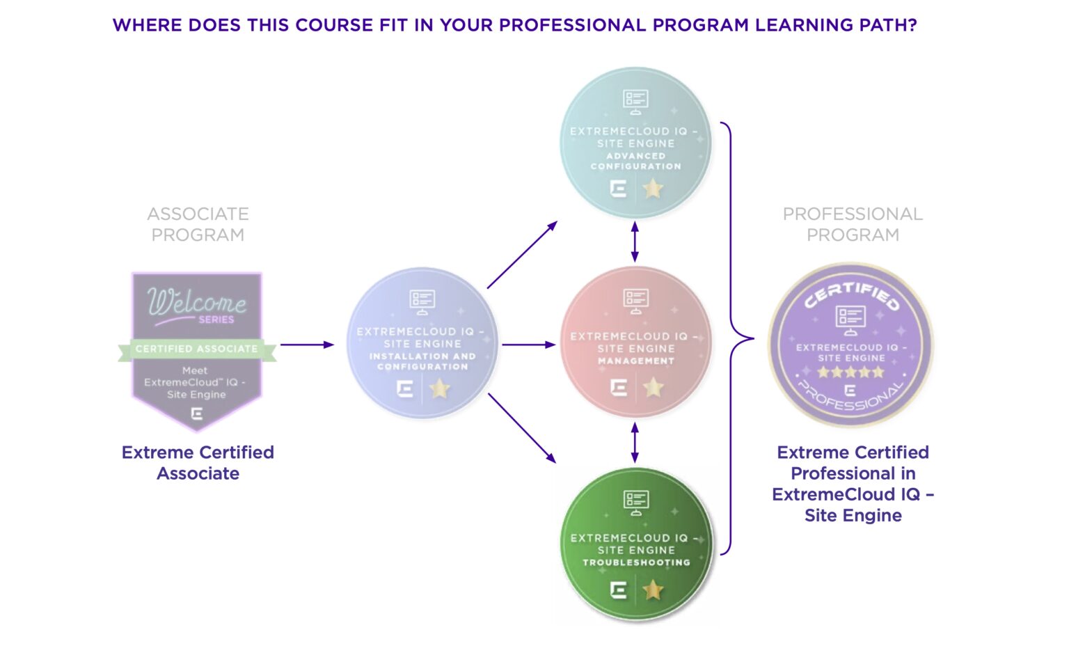 To take part and to gain the most benefit from this training, you must possess the full learning credential in ExtremeCloud™ IQ – Site Engine – Installation and Configuration. This requires completion of the training and having successfully passed the related exam.