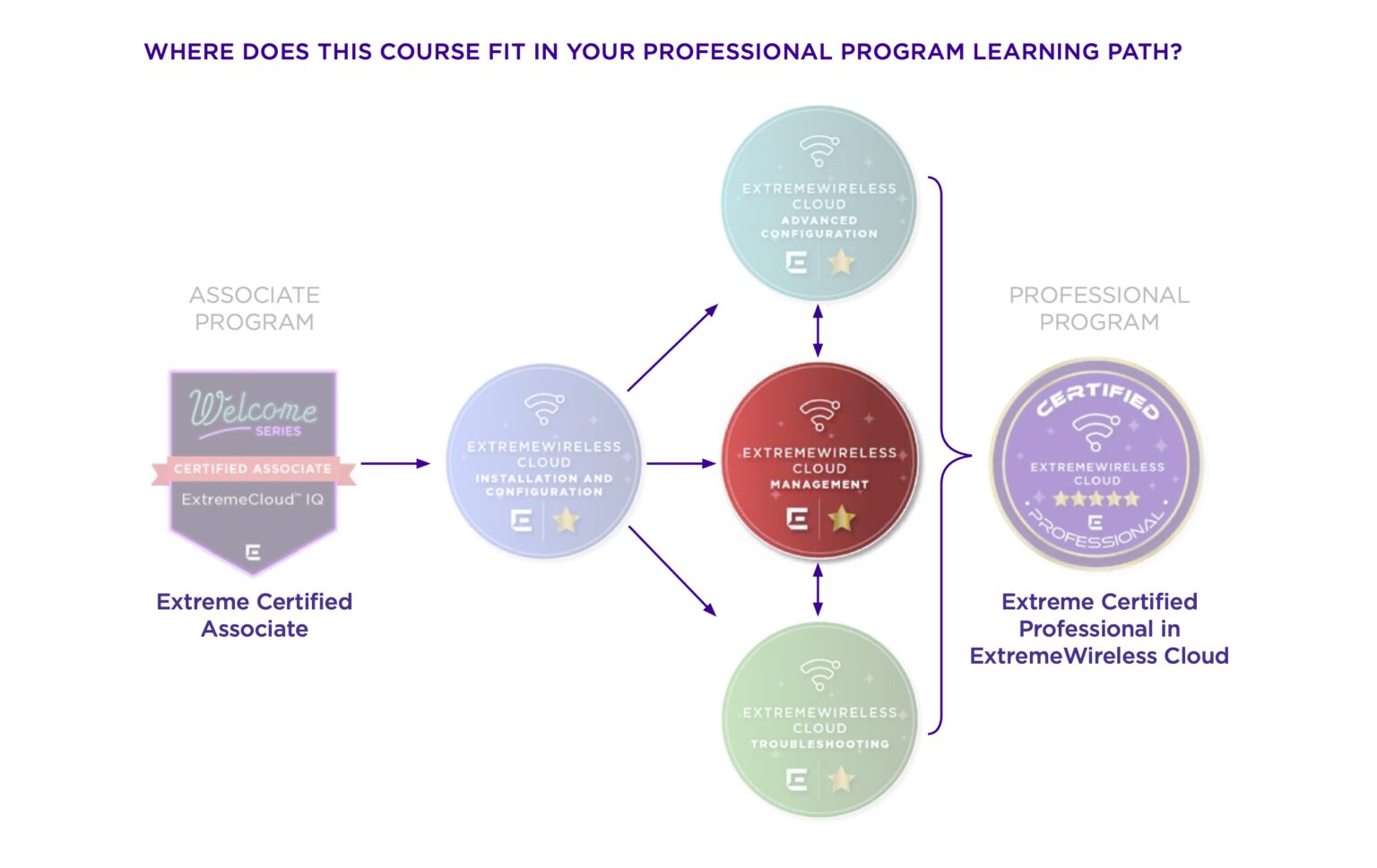 To take part and to gain the most benefit from this training, you must possess the full learning credential in ExtremeWireless Cloud – Installation and Configuration. This requires completion of the training and having successfully passed the related exam.