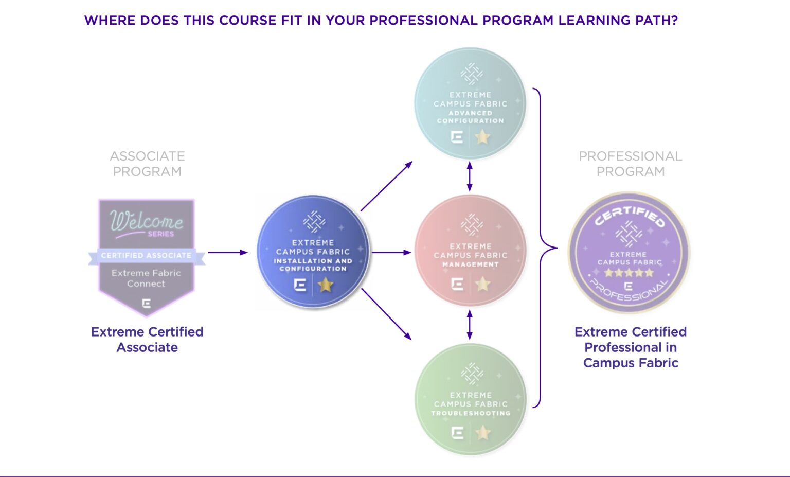 This course is designed as the first step for individuals responsible for the installation, configuration, and management of the Extreme Networks Fabric Connect switches.